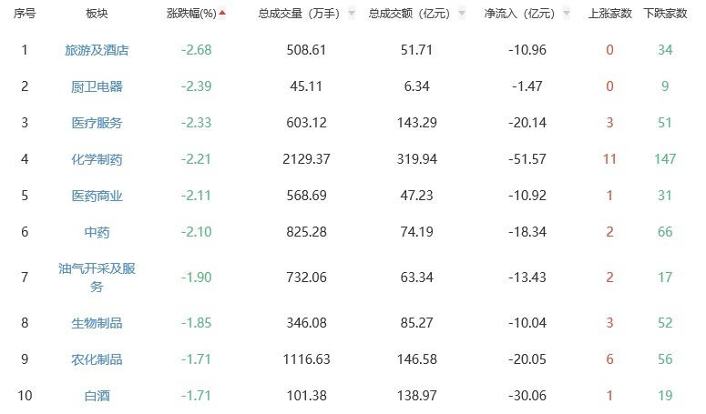 A股市场板块涨跌幅排行